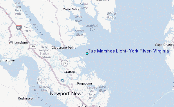 Other Nearby Locations' tide tables and tide charts to Tue Marshes Light, York River, Virginia: