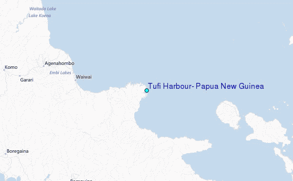 Use this relief map to navigate to tide stations, surf breaks and cities that are in the area of Tufi Harbour, Papua New Guinea.