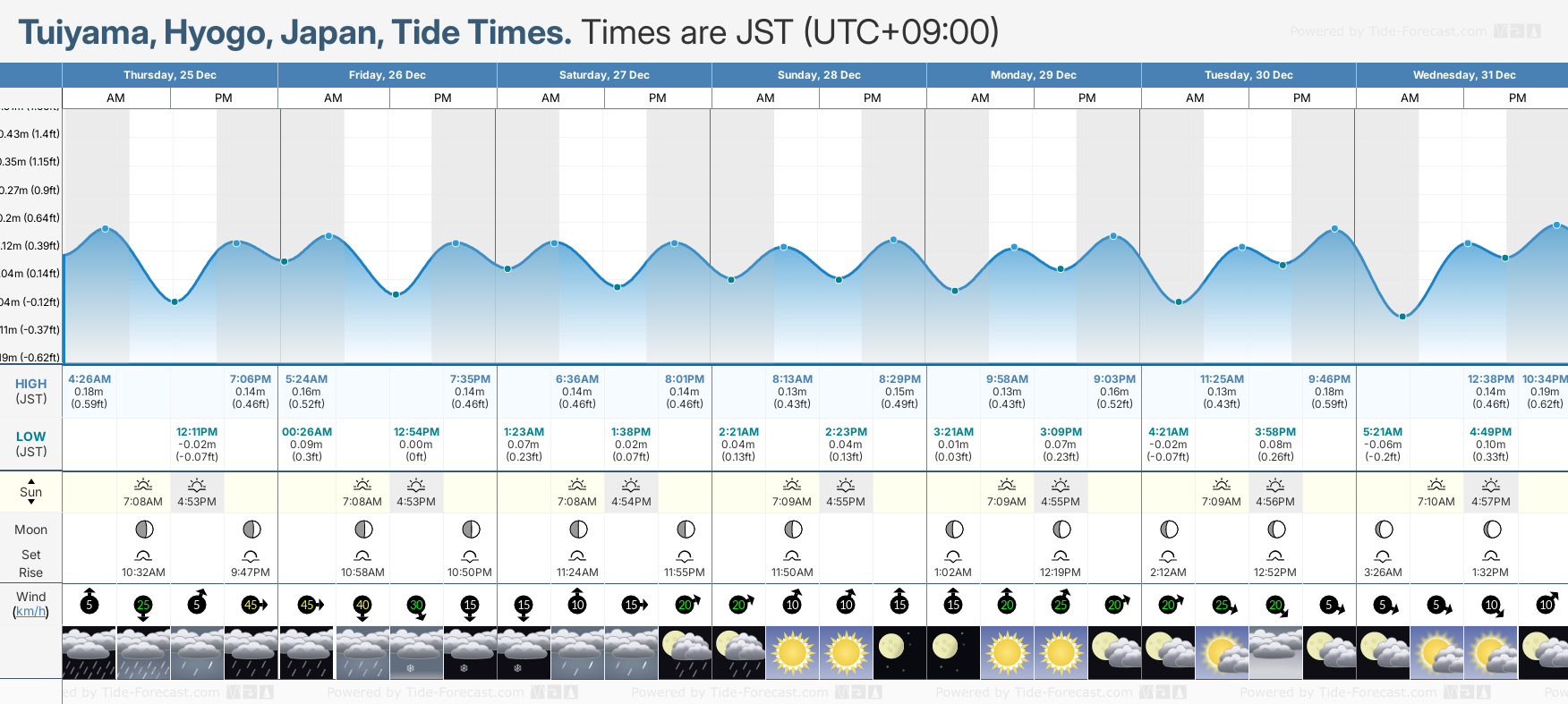 Tide Times for Tuiyama (tomorrow): Friday 26 December 2025