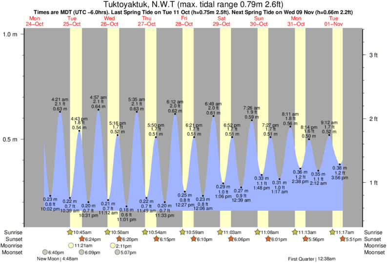 December and January Tide charts for Tuktoyaktuk: The tide charts below show the height, time and date of high and low tides for the next 30 days.