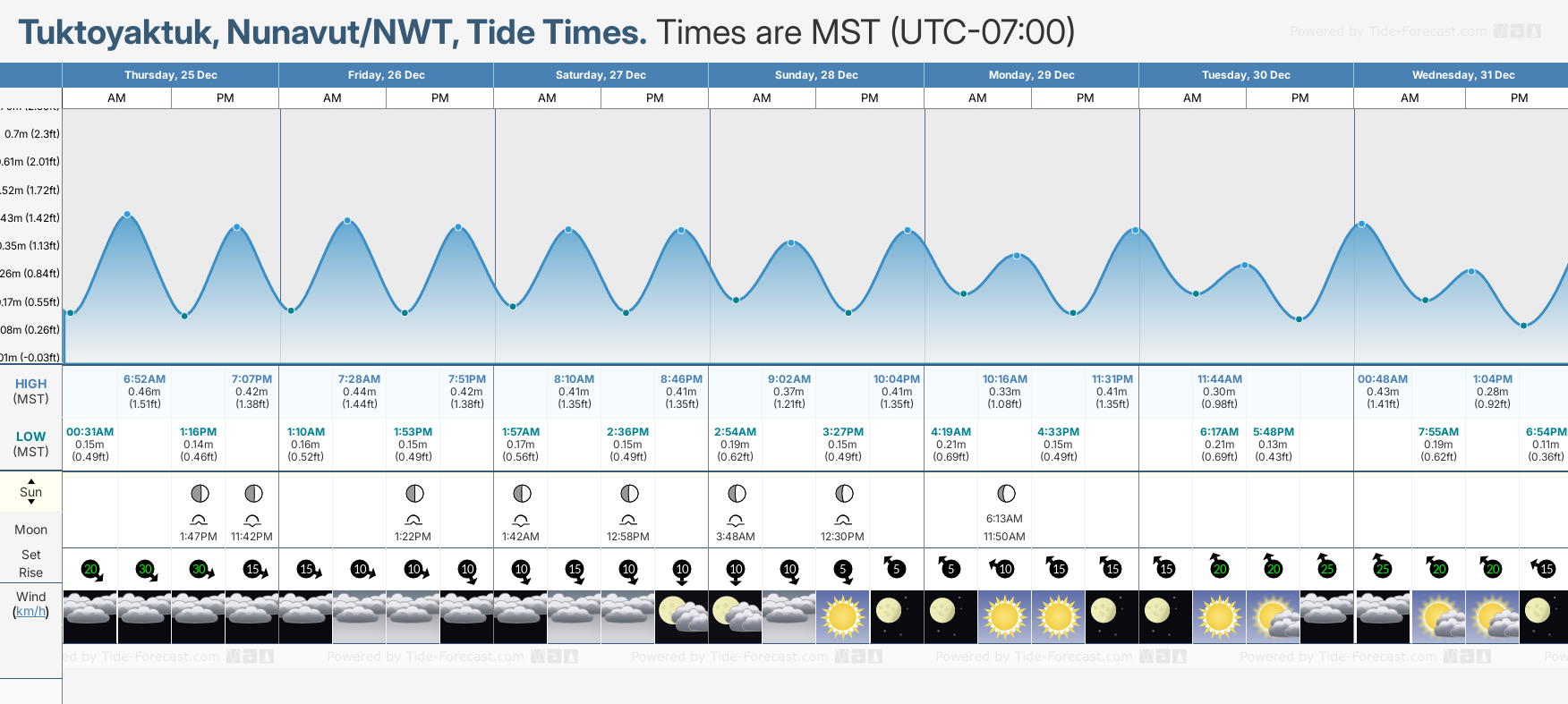 Tide Times for Tuktoyaktuk: Wednesday 31 December 2025
