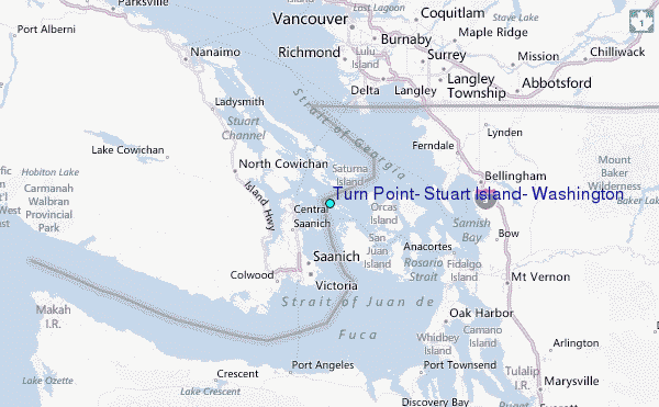 Use this relief map to navigate to tide stations, surf breaks and cities that are in the area of Turn Point, Stuart Island, Washington.