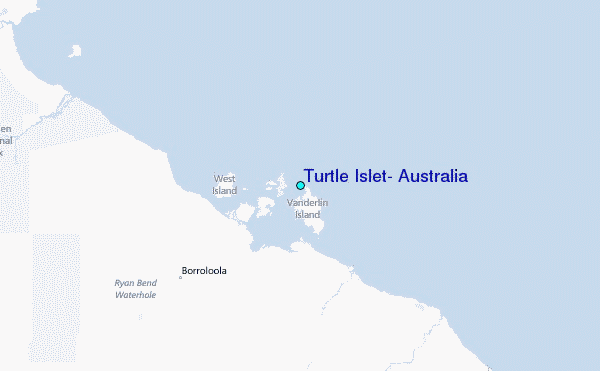 Use this relief map to navigate to tide stations, surf breaks and cities that are in the area of Turtle Islet, Australia.