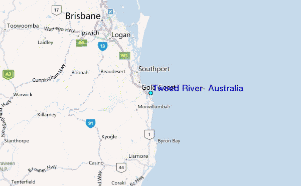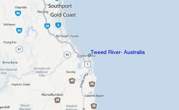 Use this relief map to navigate to tide stations, surf breaks and cities that are in the area of Tweed River, Australia.