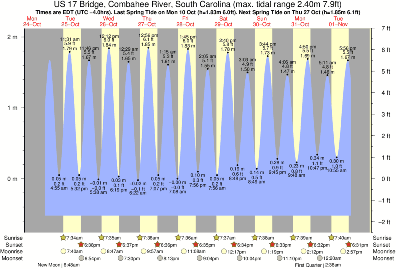Today's tide times for US 17 Bridge, Combahee River, South Carolina