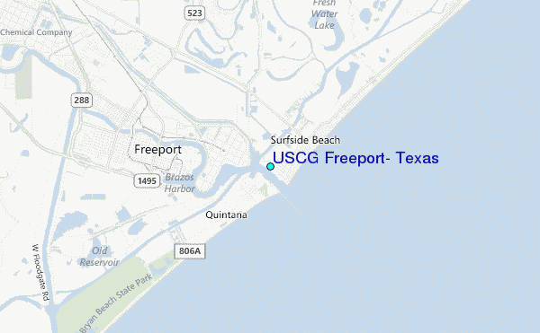 Use this relief map to navigate to tide stations, surf breaks and cities that are in the area of USCG Freeport, Texas.