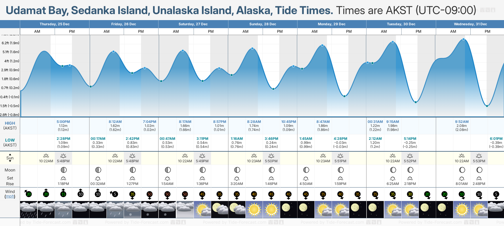 Tide Times for Udamat Bay, Sedanka Island, Unalaska Island (tomorrow): Thursday 25 December 2025