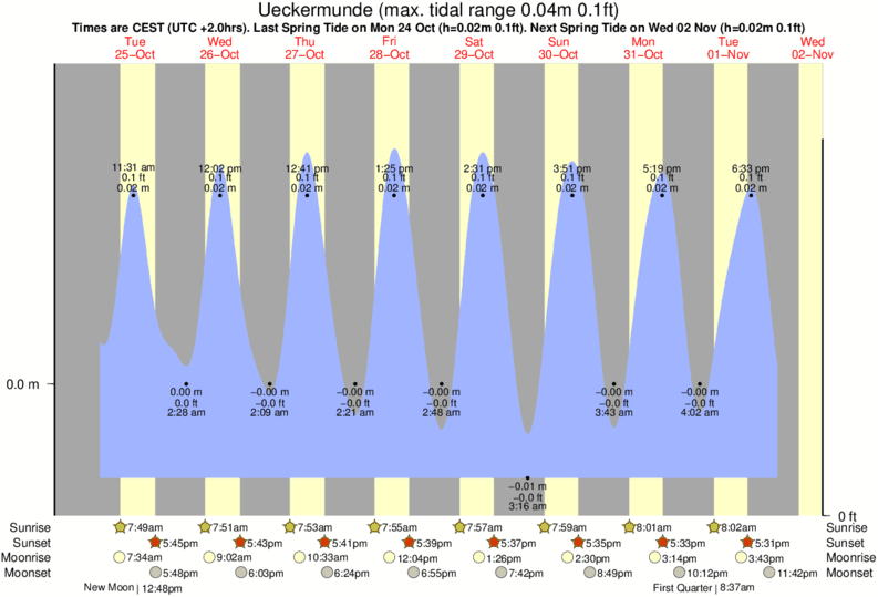 Tide chart for UeckermundeShowing low and high tide times for the next 30 days at Ueckermunde. Tide Times are CET (UTC +1.0hrs).