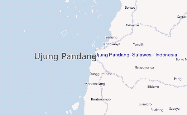 Use this relief map to navigate to tide stations, surf breaks and cities that are in the area of Ujung Pandang, Sulawesi, Indonesia.