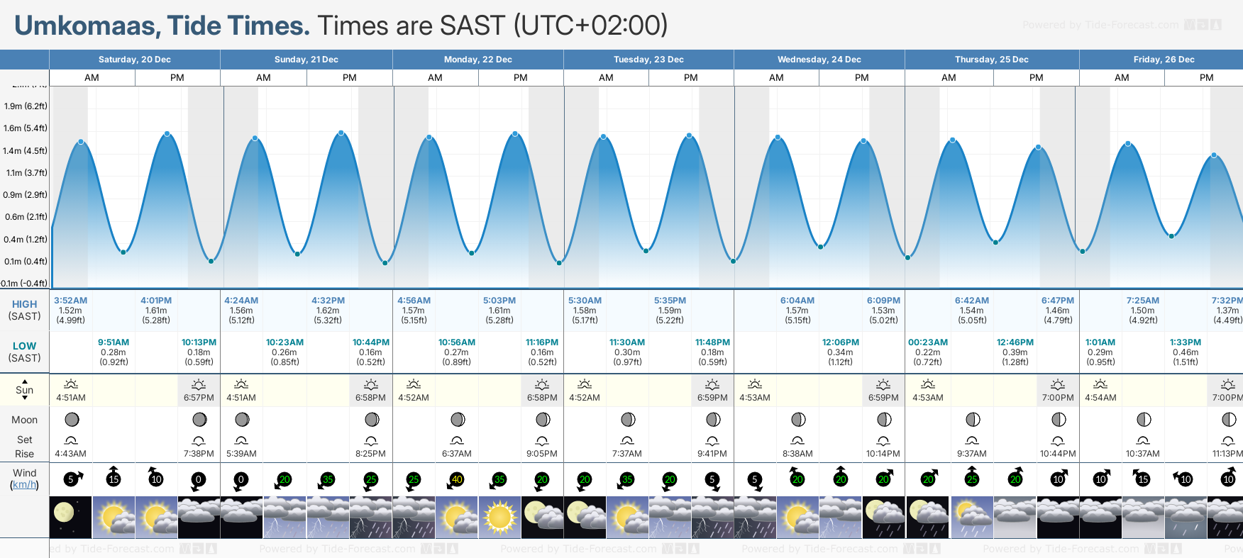 Today's tide times for Umkomaas: Saturday 20 December 2025