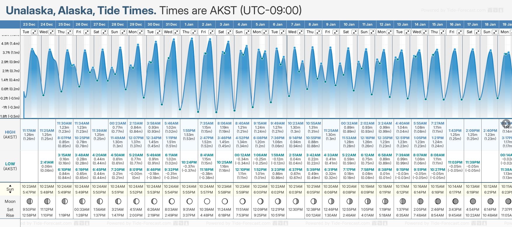 Unalaska tide times for December and January