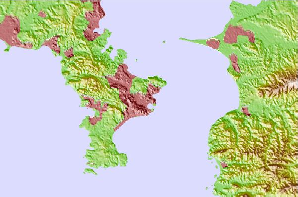Use this relief map to navigate to tide stations, surf breaks and cities that are in the area of Uraga, Kanagawa, Japan.