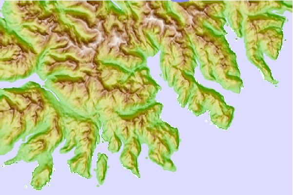 Use this relief map to navigate to tide stations, surf breaks and cities that are in the area of Usof Bay, Unalaska Island, Alaska.