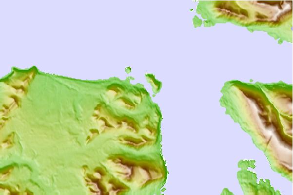 Use this relief map to navigate to tide stations, surf breaks and cities that are in the area of Uyak, Uyak Bay, Alaska.