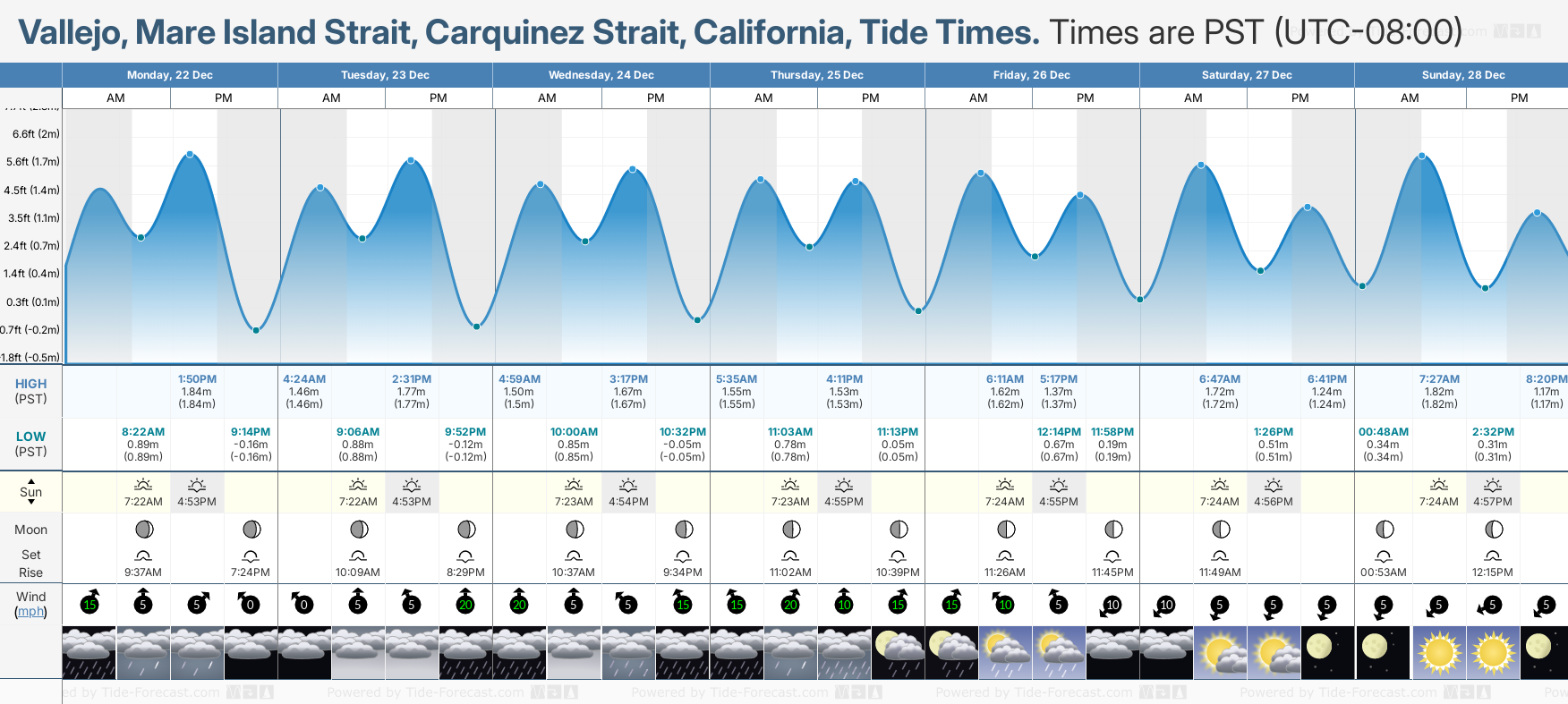 NOTE: Use of this site for Vallejo, Mare Island Strait, Carquinez Strait, California tide times is subject to our terms.