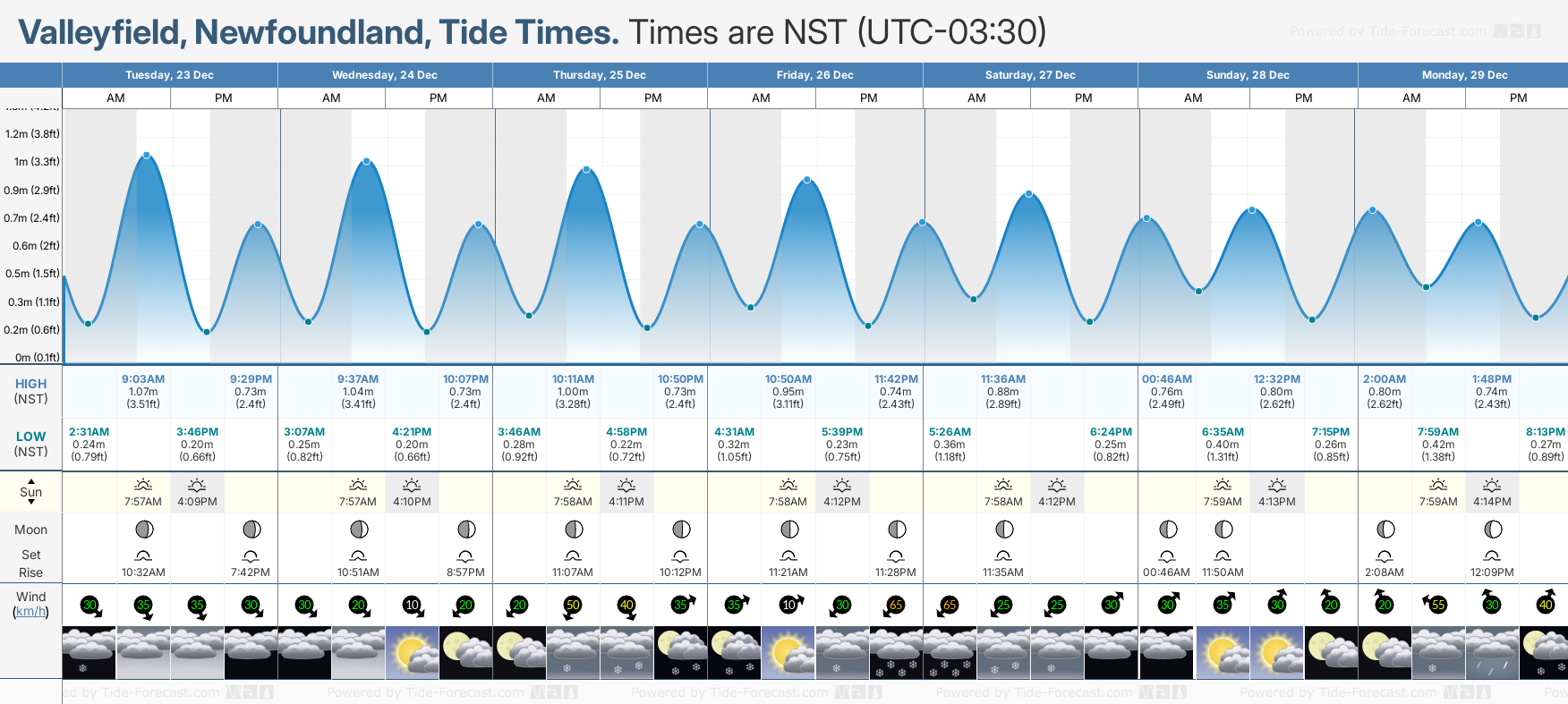 NOTE: Use of this site for Valleyfield, Newfoundland tide times is subject to our terms.