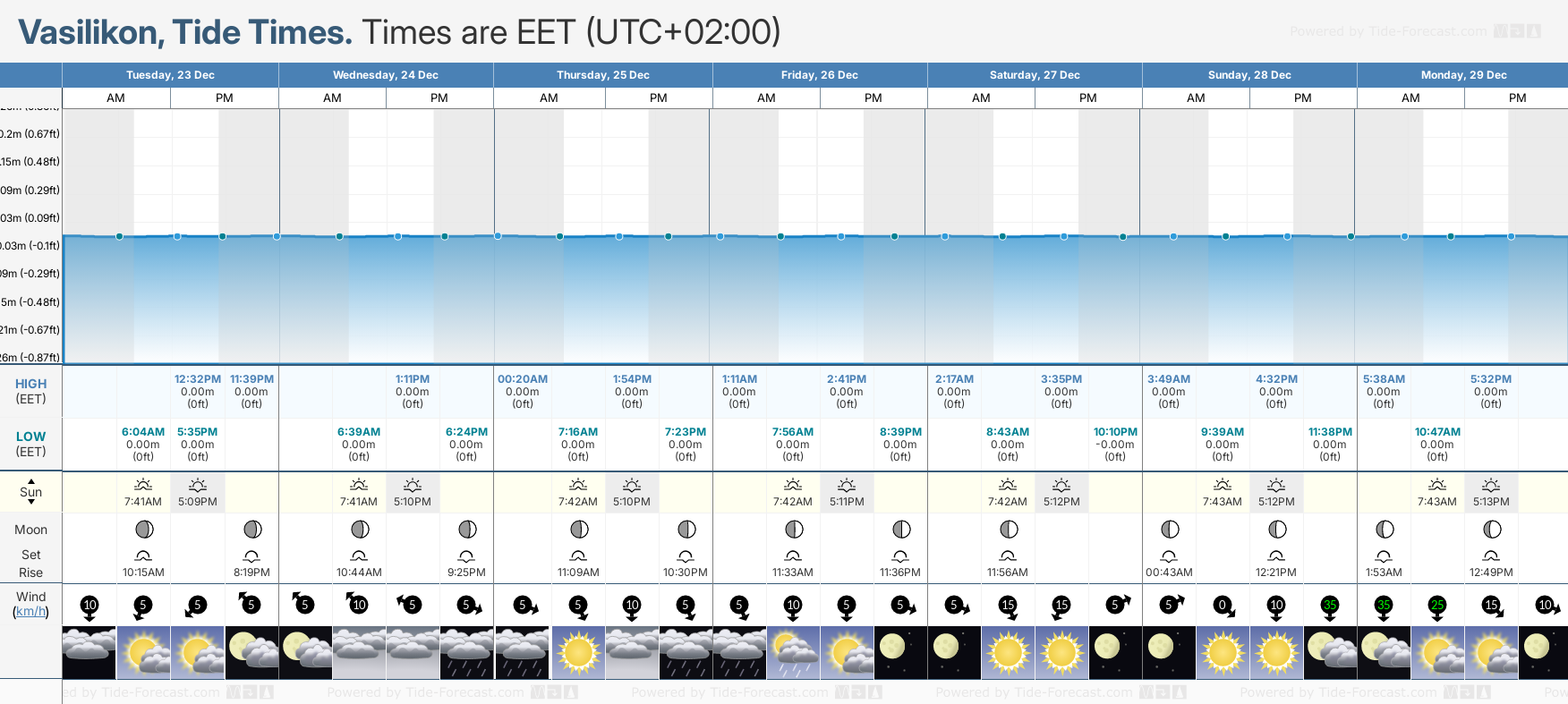 Tide Times for Vasilikon: Wednesday 24 December 2025