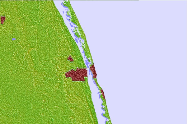 Use this relief map to navigate to tide stations, surf breaks and cities that are in the area of Vero Beach (ocean), Florida.
