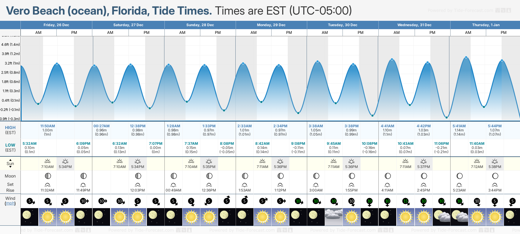 Tide Times for Vero Beach (ocean): Sunday 28 December 2025