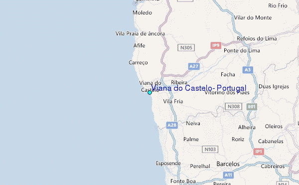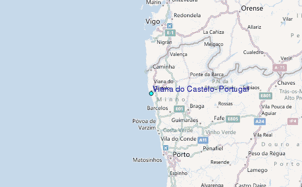 Use this relief map to navigate to tide stations, surf breaks and cities that are in the area of Viana do Castelo, Portugal.