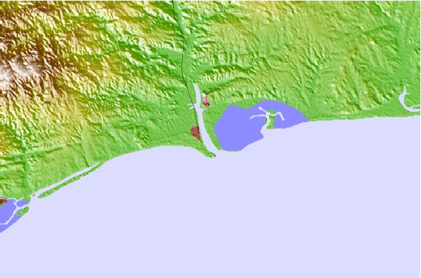 Use this relief map to navigate to tide stations, surf breaks and cities that are in the area of Vila Real de Santo Antonio, Portugal.