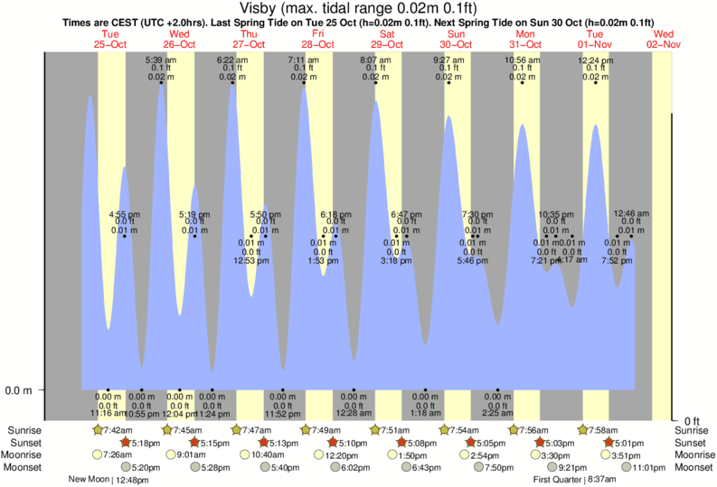 Tide chart for VisbyShowing low and high tide times for the next 30 days at Visby. Tide Times are CET (UTC +1.0hrs).