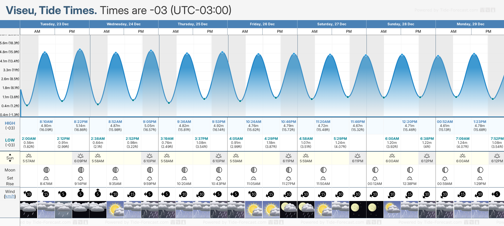 Tide Times for Viseu (tomorrow): Wednesday 24 December 2025