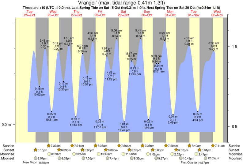 Tide chart for Vrangel'Showing low and high tide times for the next 30 days at Vrangel'. Tide Times are +10 (UTC +10.0hrs).