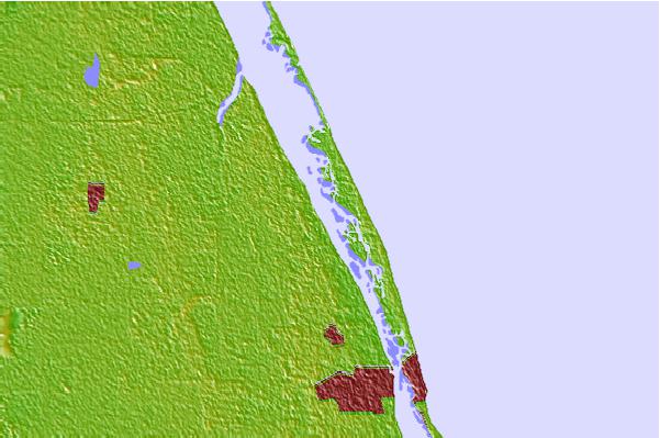Use this relief map to navigate to tide stations, surf breaks and cities that are in the area of Wabasso, Florida.