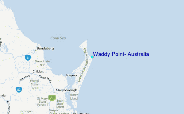Use this relief map to navigate to tide stations, surf breaks and cities that are in the area of Waddy Point, Australia.