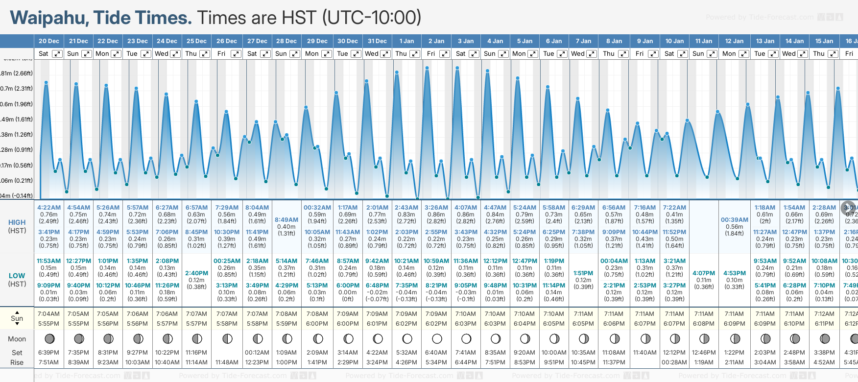 Tide Times for Waipahu (tomorrow): Sunday 21 December 2025