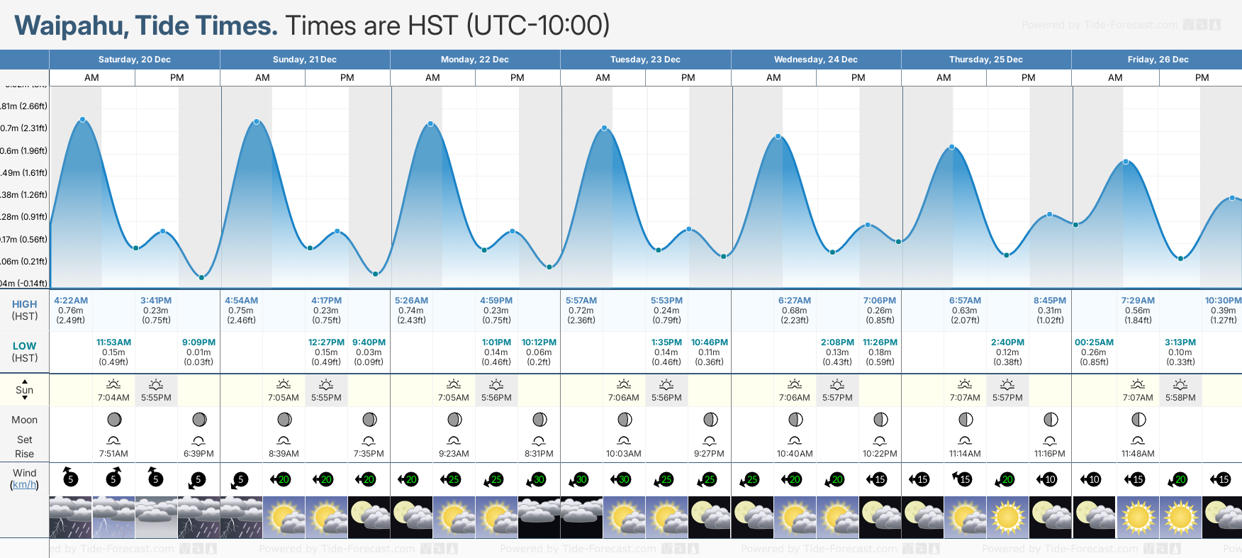 Today's tide times for Waipahu: Saturday 20 December 2025