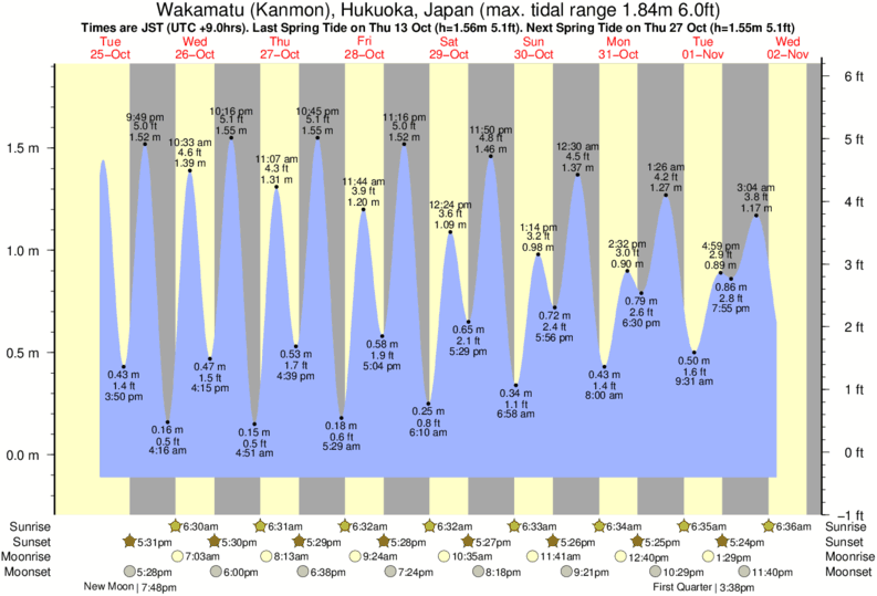 Tide chart for Wakamatu (Kanmon)Showing low and high tide times for the next 30 days at Wakamatu (Kanmon). Tide Times are JST (UTC +9.0hrs).