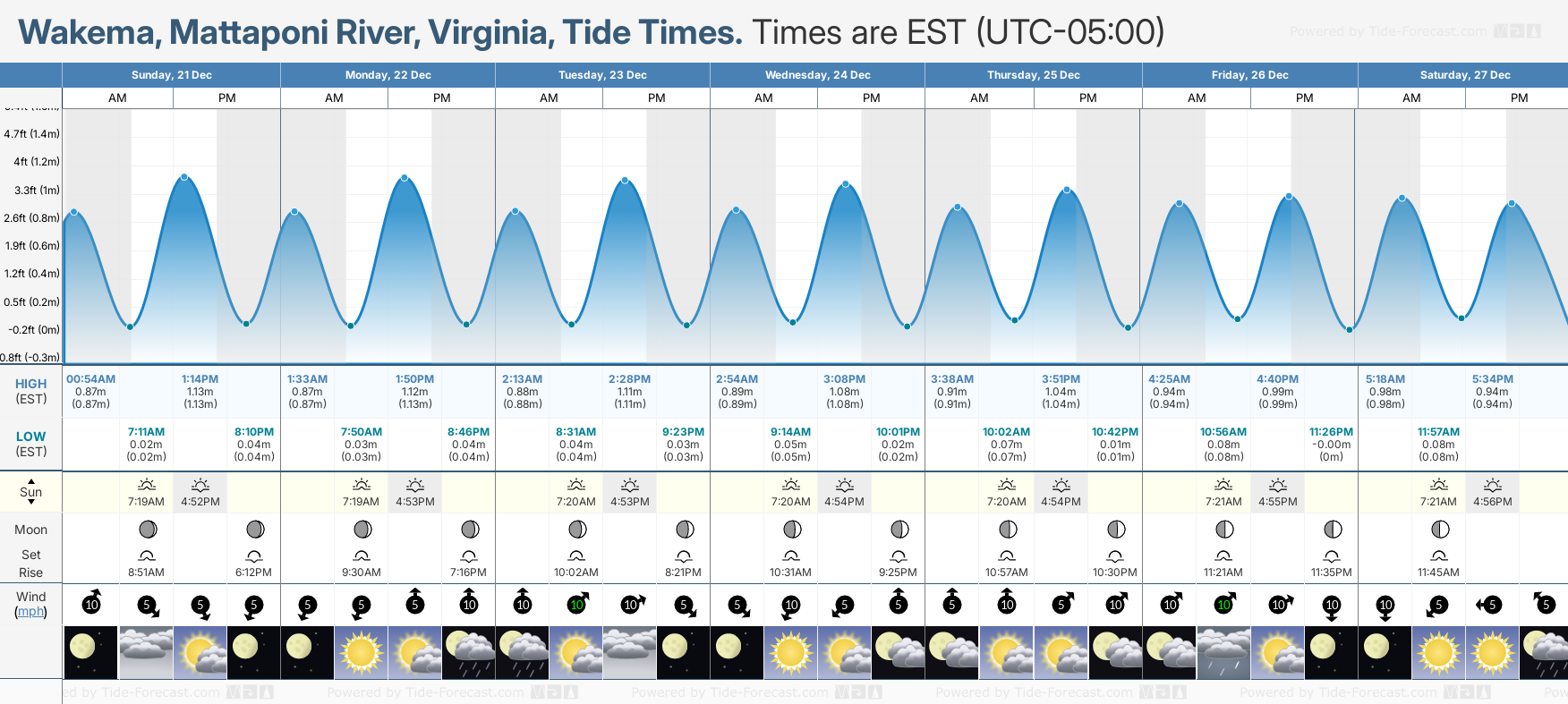 NOTE: Use of this site for Wakema, Mattaponi River, Virginia tide times is subject to our terms.
