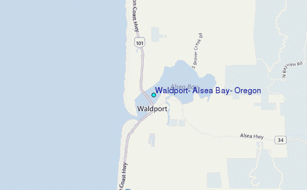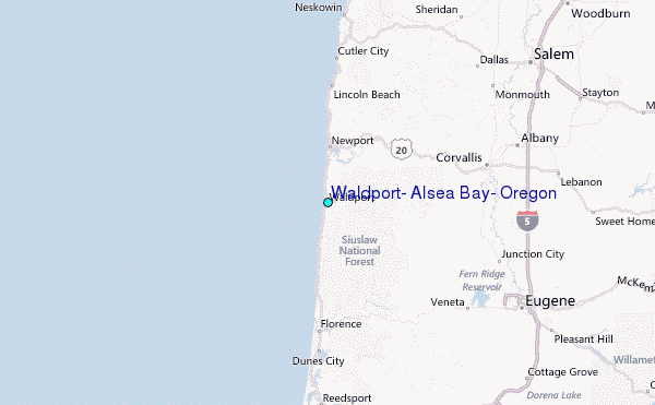 Use this relief map to navigate to tide stations, surf breaks and cities that are in the area of Waldport, Alsea Bay, Oregon.