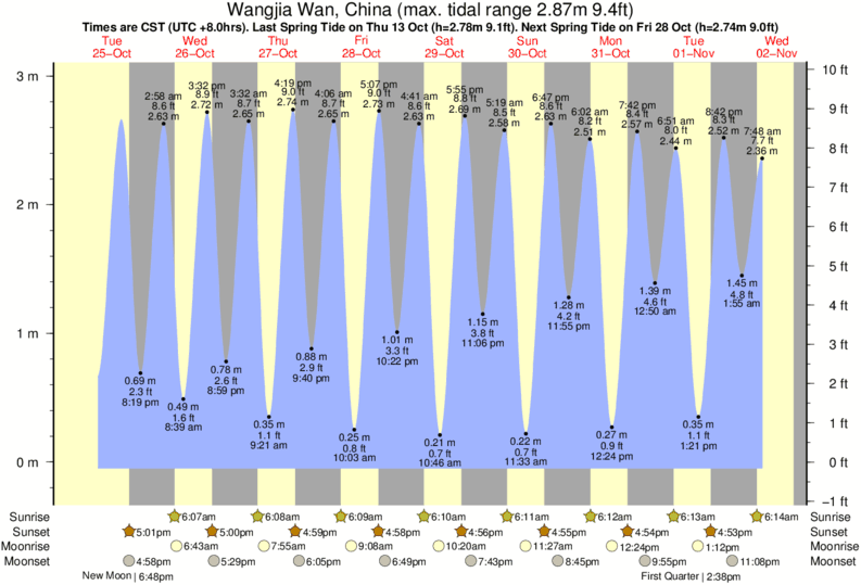 Tide Times are CST (UTC +8.0hrs). Last Spring High Tide at Wangjia Wan was on Mon 08 Dec (height: 2.79m 9.2ft). Next high Spring Tide at Wangjia Wan will be on Wed 07 Jan (height: 2.79m 9.2ft).