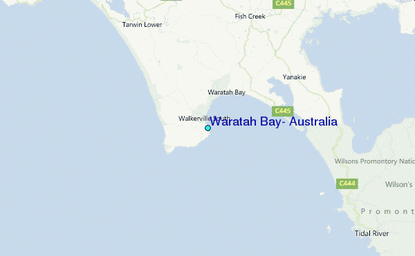 Use this relief map to navigate to tide stations, surf breaks and cities that are in the area of Waratah Bay, Australia.