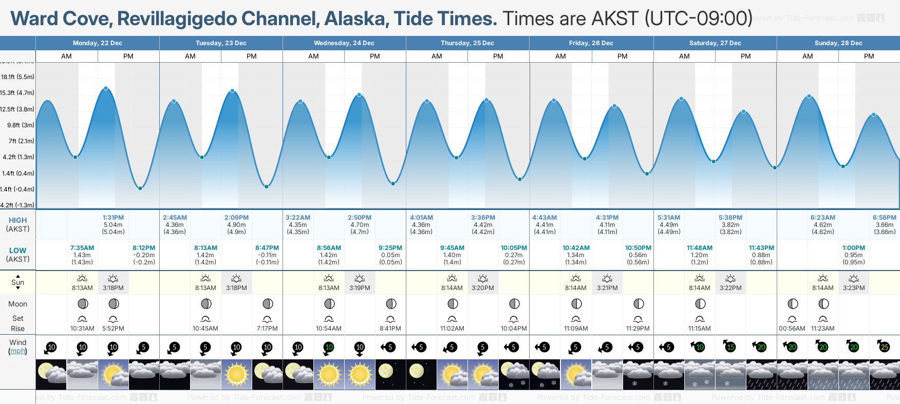 Tide Times for Ward Cove, Revillagigedo Channel: Sunday 28 December 2025