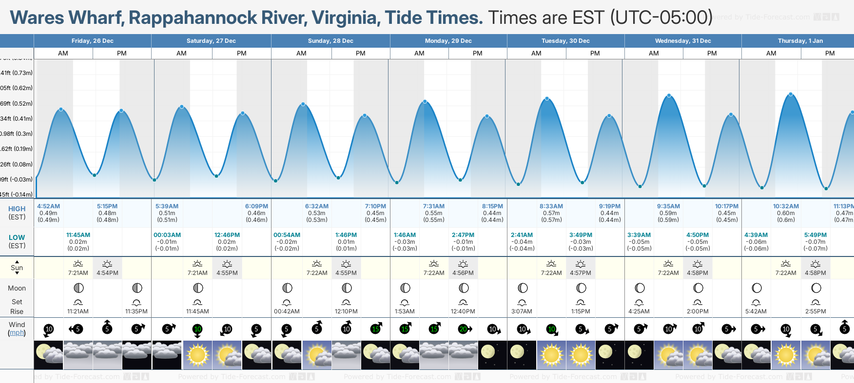 Tide Times for Wares Wharf, Rappahannock River (tomorrow): Friday 26 December 2025