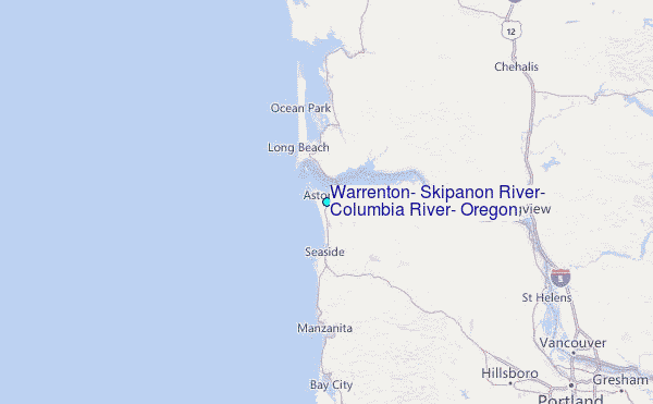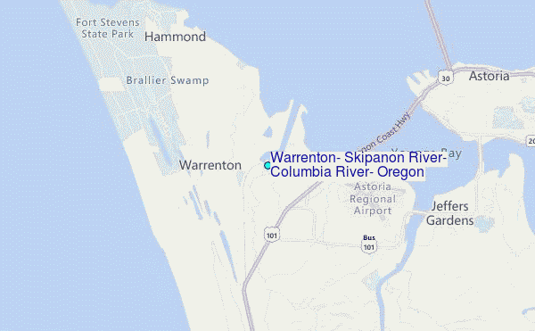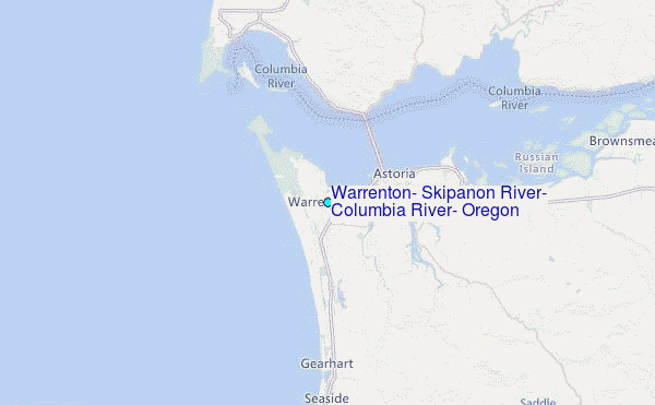 Use this relief map to navigate to tide stations, surf breaks and cities that are in the area of Warrenton, Skipanon River, Columbia River, Oregon.