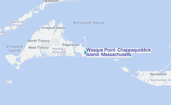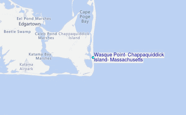Use this relief map to navigate to tide stations, surf breaks and cities that are in the area of Wasque Point, Chappaquiddick Island, Massachusetts.