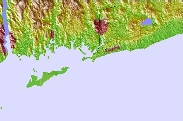 Use this relief map to navigate to tide stations, surf breaks and cities that are in the area of Watch Hill Point, Rhode Island.