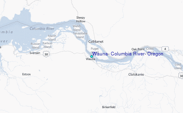 Use this relief map to navigate to tide stations, surf breaks and cities that are in the area of Wauna, Columbia River, Oregon.