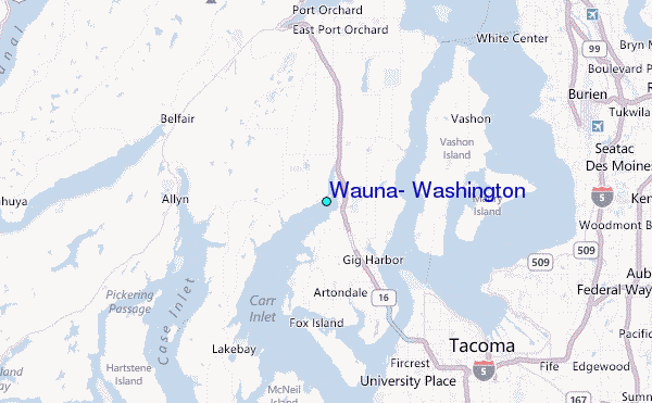 Use this relief map to navigate to tide stations, surf breaks and cities that are in the area of Wauna, Washington.