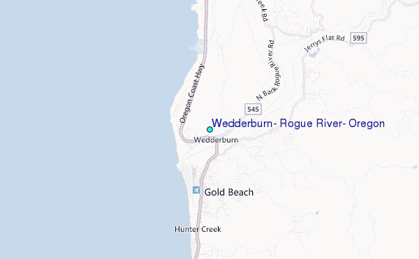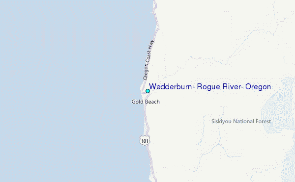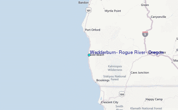 Use this relief map to navigate to tide stations, surf breaks and cities that are in the area of Wedderburn, Rogue River, Oregon.