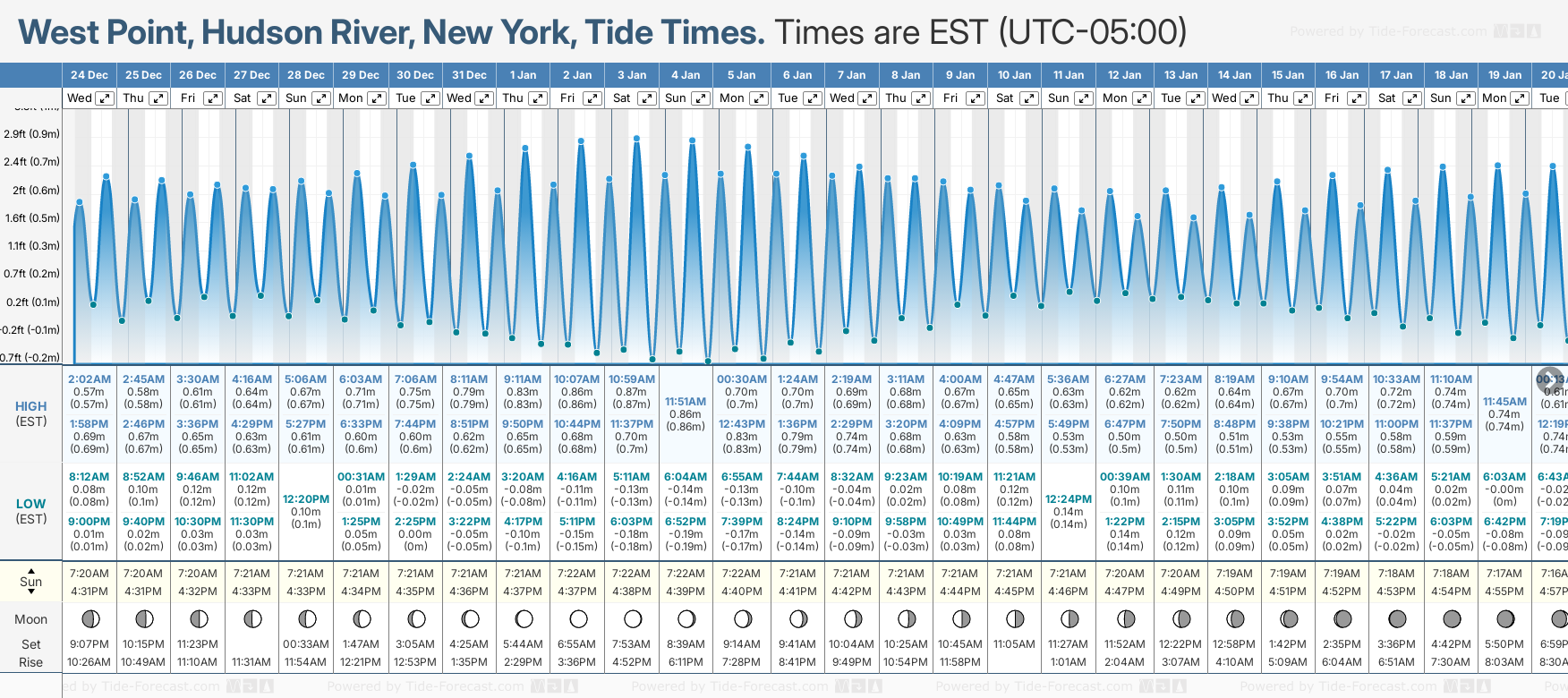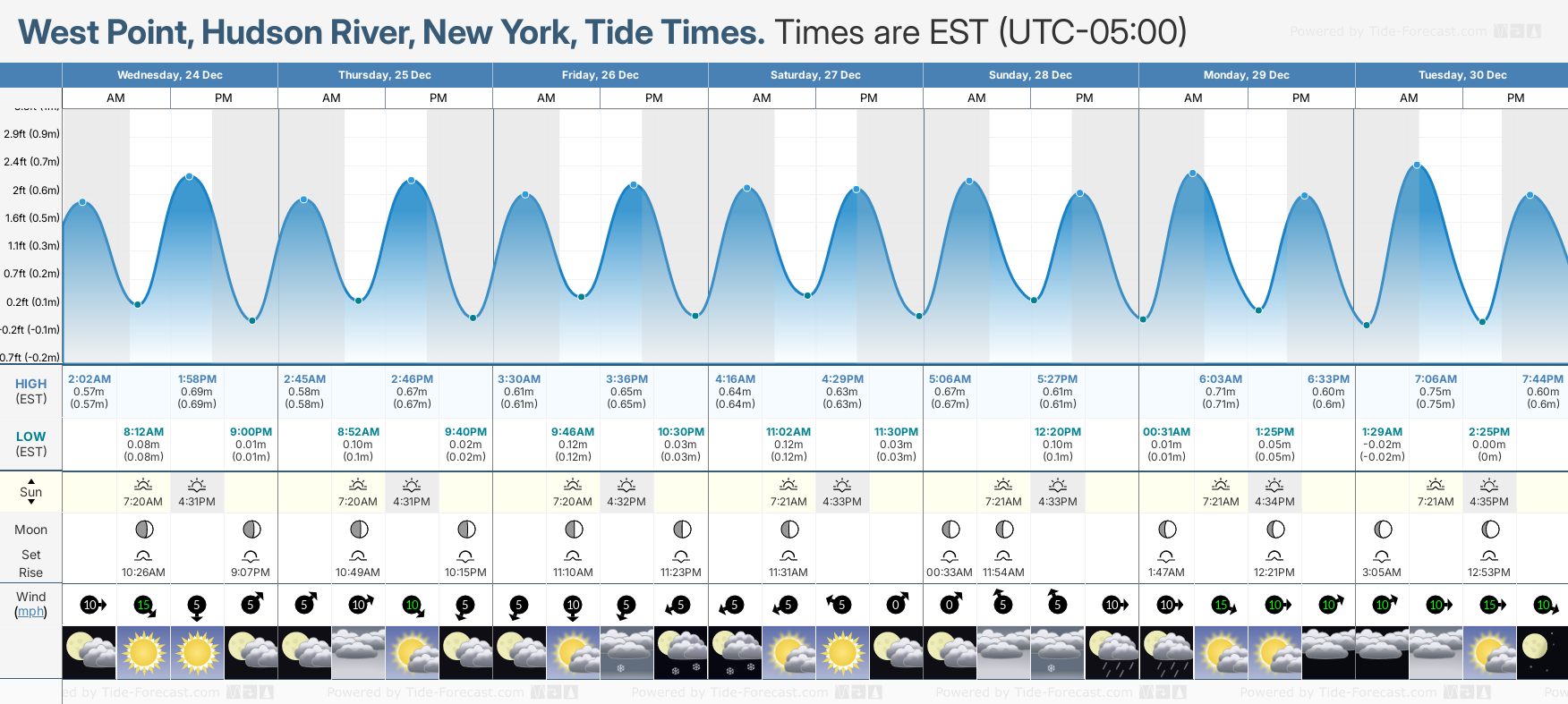 NOTE: Use of this site for West Point, Hudson River, New York tide times is subject to our terms.