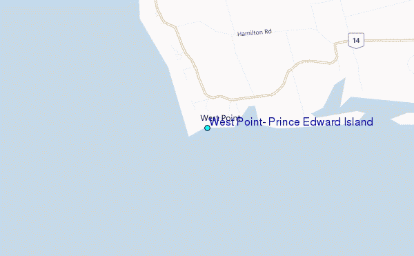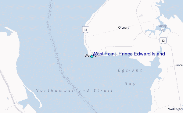 Use this relief map to navigate to tide stations, surf breaks and cities that are in the area of West Point, Prince Edward Island.