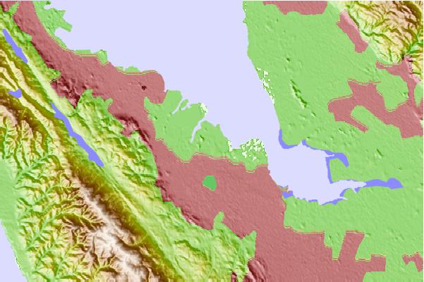Use this relief map to navigate to tide stations, surf breaks and cities that are in the area of West Point Slough, San Francisco Bay, California.