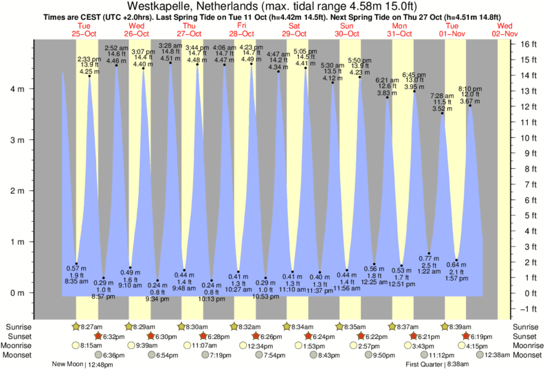 December and January Tide charts for Westkapelle: The tide charts below show the height, time and date of high and low tides for the next 30 days.