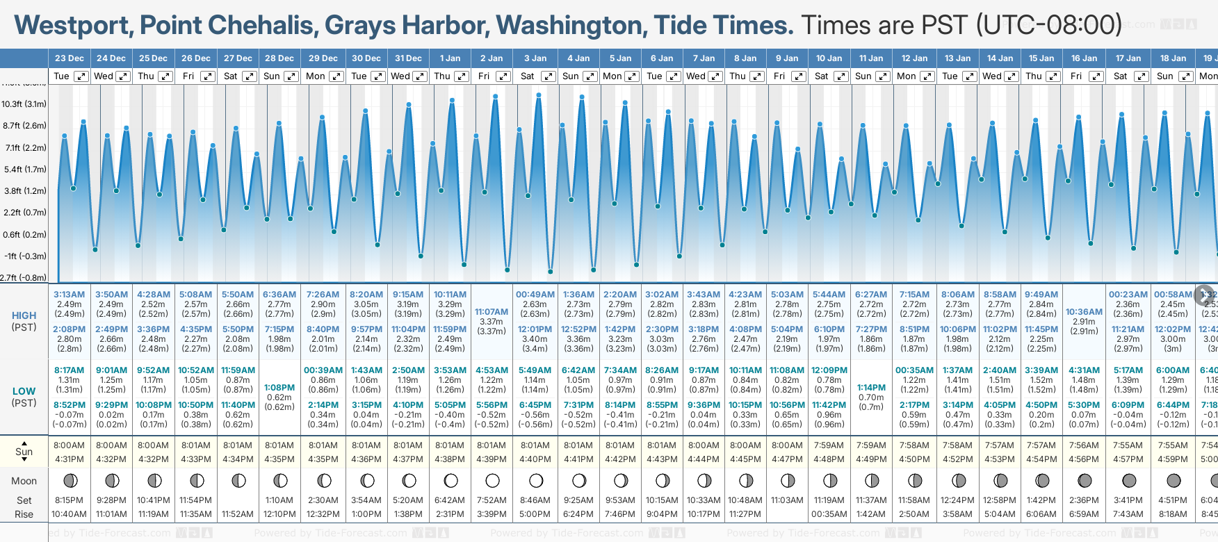 Westport, Point Chehalis, Grays Harbor tide times for December and January